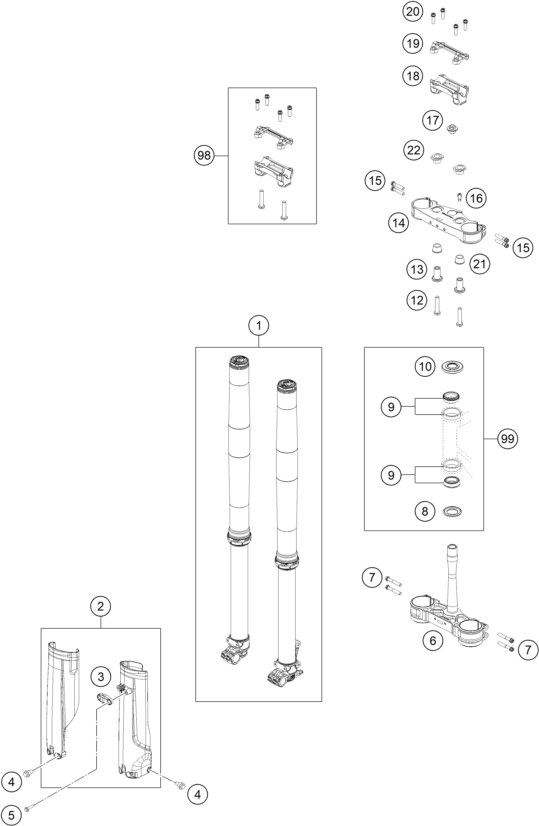 FRONT FORK, TRIPLE CLAMP