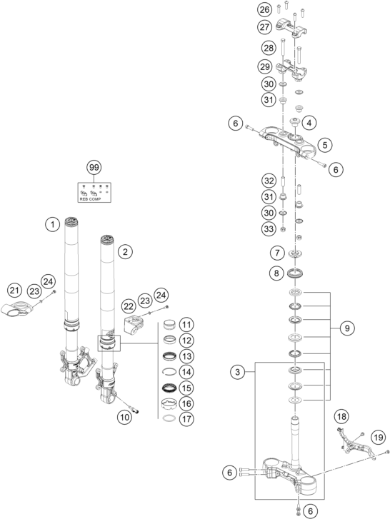 FRONT FORK, TRIPLE CLAMP