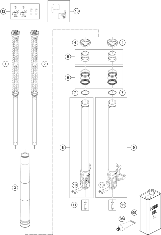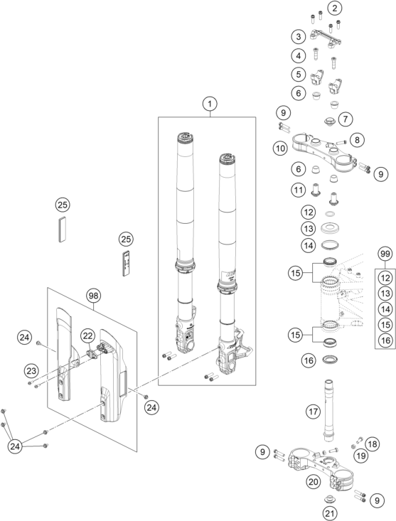 FRONT FORK, TRIPLE CLAMP